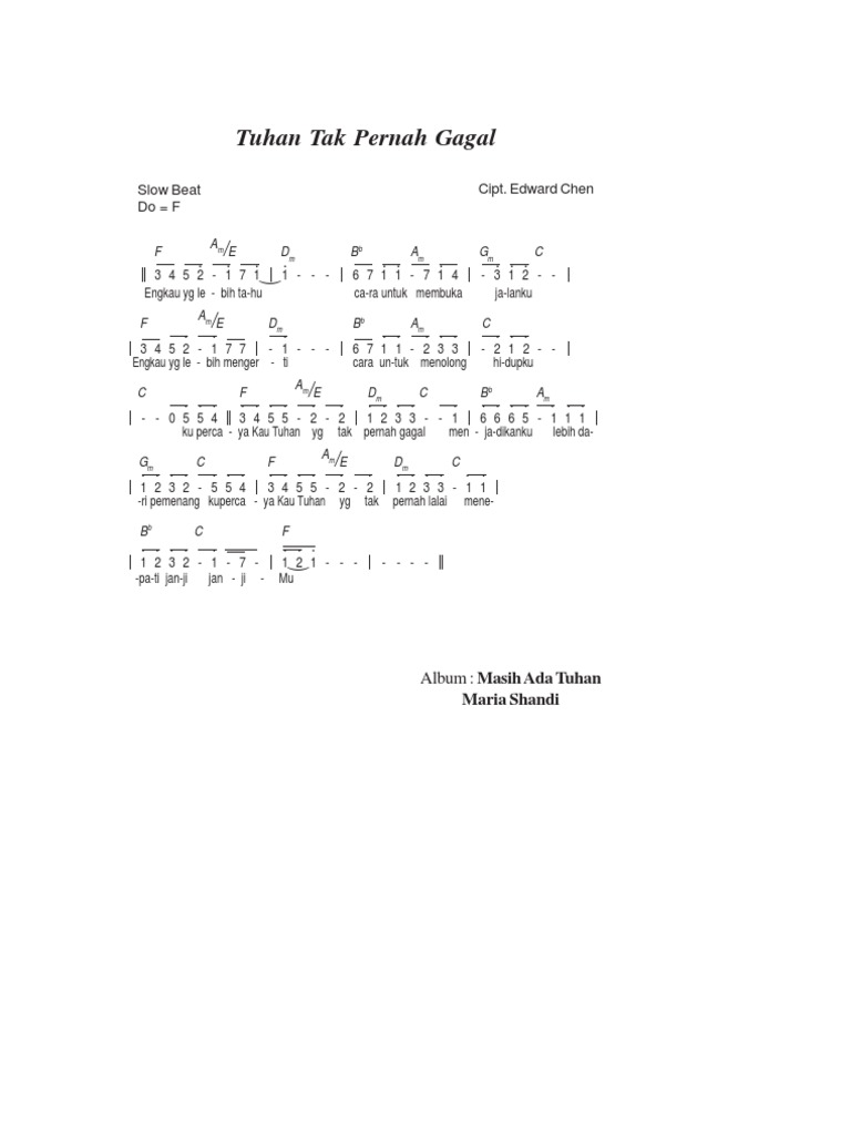 Not angka tuhan tak pernah gagal. Partitur NOT ANGKA Karaoke LAGU. Kami di sini untuk mendoakan dan mendukungmu supaya bisa membangun hubungan dengan Bapa lebih baik la. Mohon maaf karena selama ini saya tidak menerima permintaanrequest membuat not angka karena tidak mudah memang membuat dan menulis not angka.